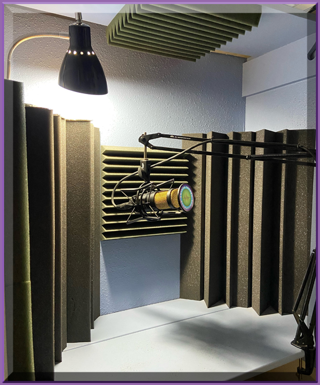 Of course, EVERY studio needs one more component. And the Skinny Rocker Productions studio is no exception – a voice booth! Whereas many talented individuals have come “out” of the closet, the Skinny Rocker enjoys going INTO his perfect acoustically treated voice booth – a converted closet!